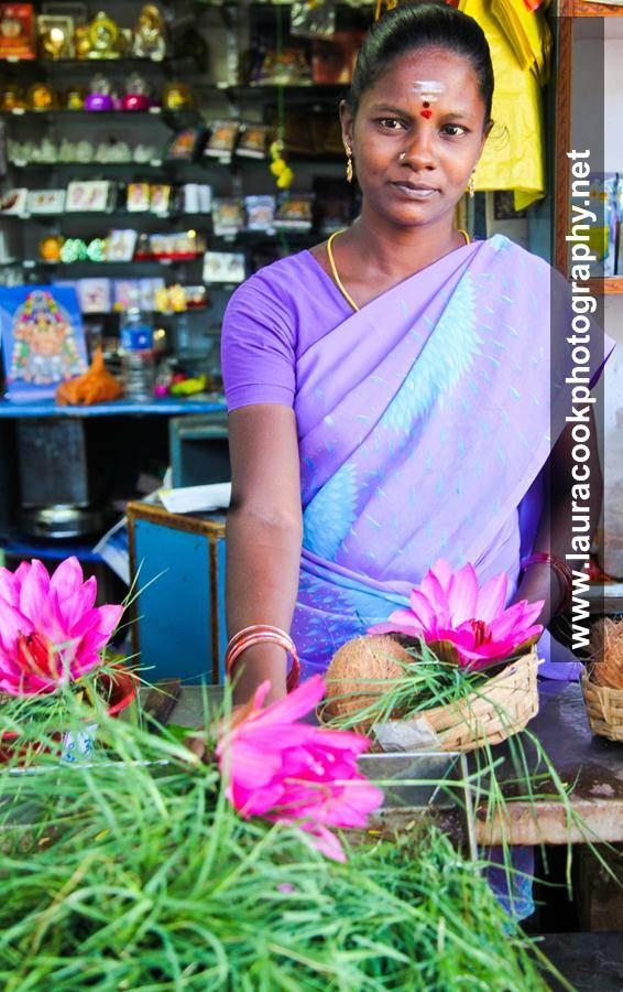Flower seller outside Sri Manakula Vinayagar Temple. This temple sometimes receives more than 5000 visitors in day, there were at least 200 when I was there.