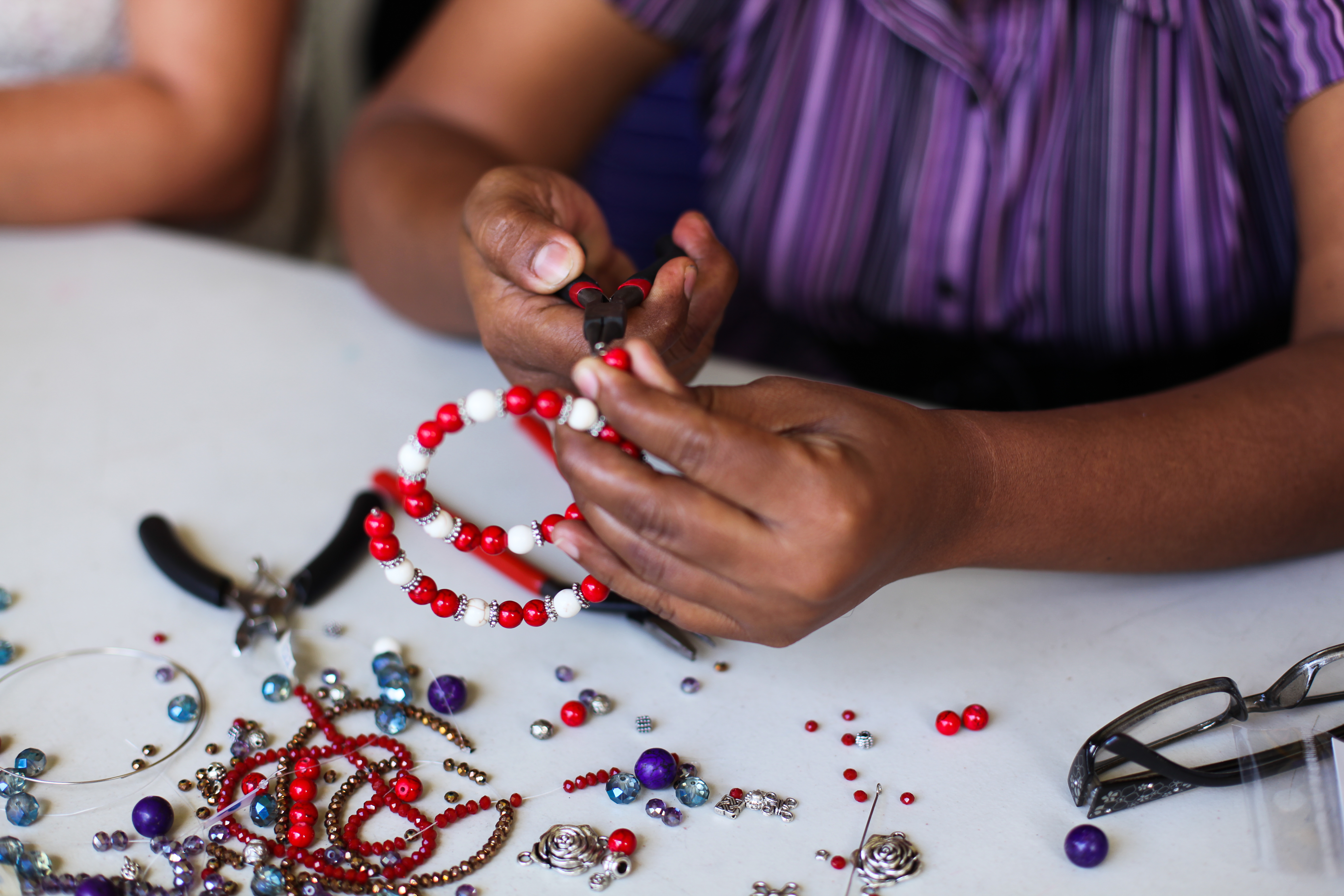 Therapeutic opportunities are plenty. Here a group of girls use beads to make necklaces and bracelets.