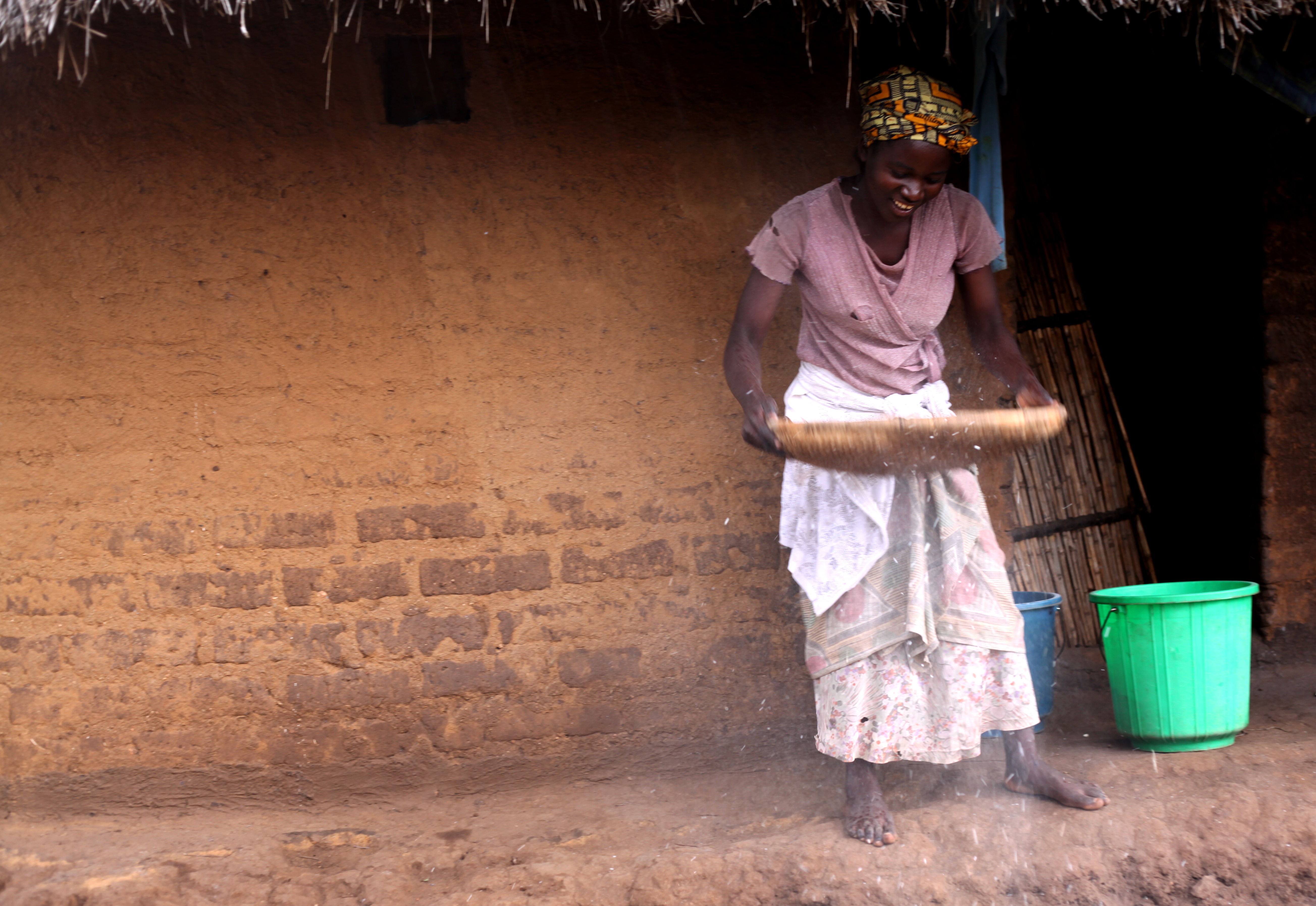 This photograph shows a woman in a village in the south of the country. She is tossing and sorting maize grain. I had asked her permission to photograph her (I always do this) and she agreed. She was a shy subject but carried on with her work, preparing food for her family.