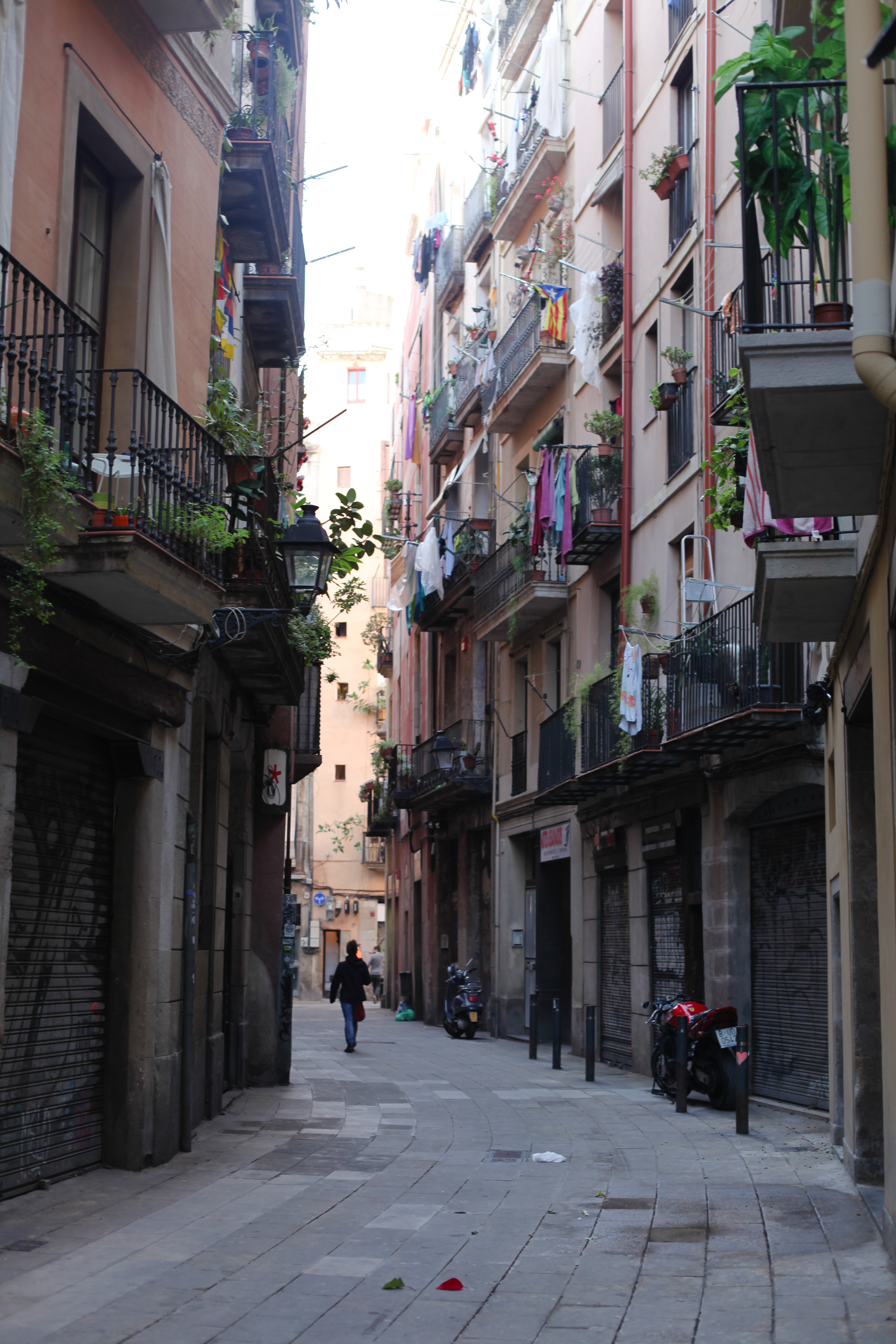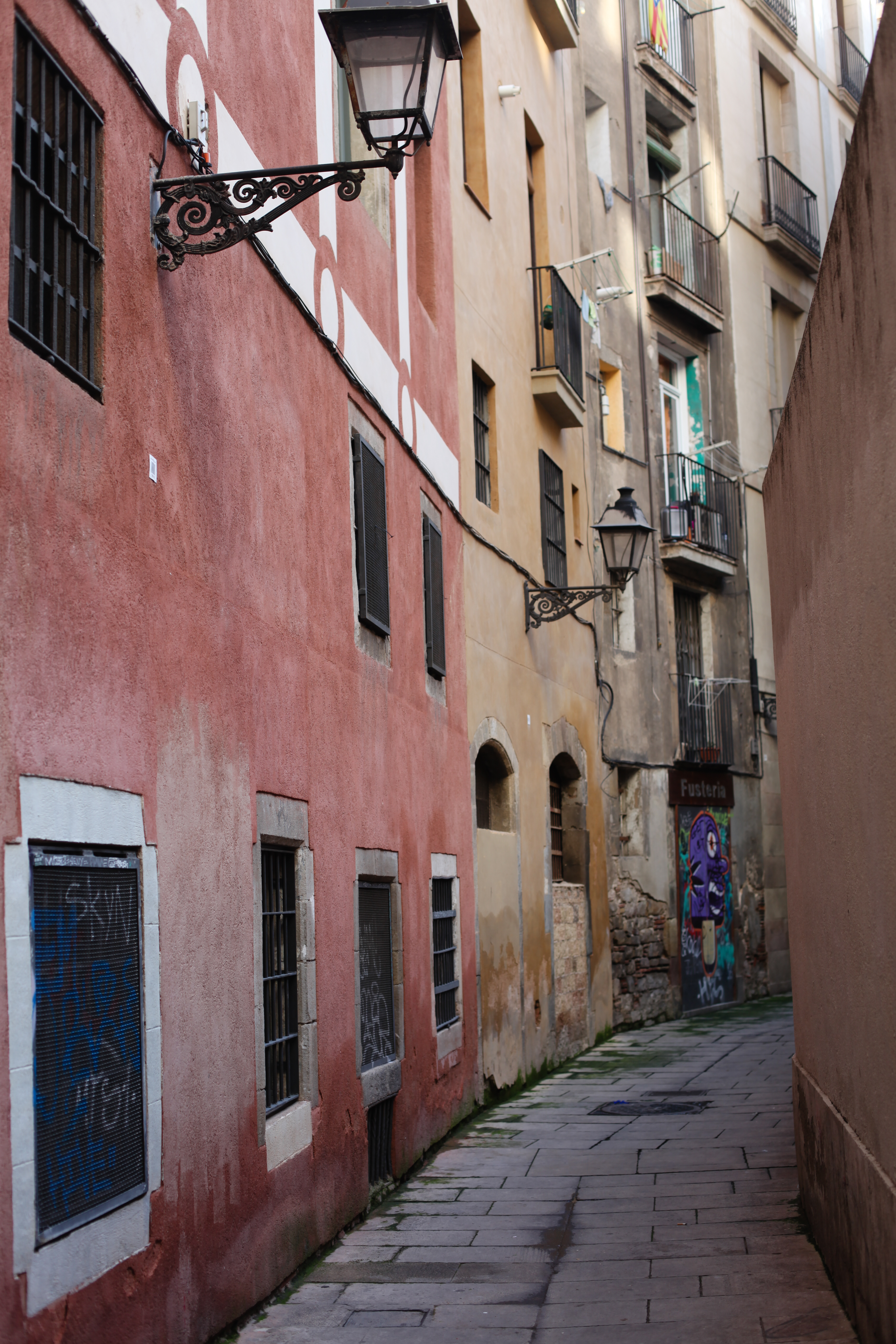 The Ciutat Vella (Old City) of Barcelona is a maze of authentic buildings and small businesses and as the sun came up on a walk through the fairly empty streets in December 2014 I had the chance to get some snaps of the pretty narrow alleyways that make up the area: