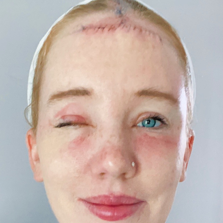 This week I had plastic surgery on my forehead to remove a Basal Cell Carcinoma (BCC). BCCs have been part of my life since 2015, this was my 5th treatment and my most significant. This particular BCC had been treated before but not responded and so painful and deforming surgery in the middle of my face became the only option. During the COVID-19 lockdown, I watched with dismay as my skin cancer visible started to spread before my eyes. It was as if my skin cancer knew my surgery was delayed and was rebelling against me. This Thursday gone I had the skin cancer removed, and many stitches and two black-eyes later I find myself reflecting here on my sofa about my relationship with my skin.